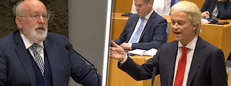 Wilders: “Ja voorzitter, hoe haalt de heer Timmermans het in zijn hoofd? Hoe haalt hij het in zijn hoofd? Waar haalt hij het lef vandaan om onze mensen tot racist te bestempelen? Dat is nogal wat wat u zegt en daar klopt helemaal niets van. U heeft het over de omvolking en de omvolkingstheorieën. Inderdaad, waar wij die term, sommigen van ons, hebben gebruikt, hebben wij in een verklaring gezegd dat we dat niet hadden moeten doen. Daar bedoelen we helemaal geen omvolkingstheorie mee zoals die tijdens het nazisme is. Dat woord hadden we niet moeten gebruiken en dat zullen we ook niet meer gebruiken. We nemen afstand van alles wat daarmee te maken heeft, hebben we ook gezegd. We hebben gezegd: we maken ons zorgen, zoals miljoenen Nederlanders. Daarom hebben we de verkiezingen gewonnen, over de invloed van asiel en migratie. Loop door de grote steden en je ziet waar we het over hebben en dat is legitiem. En hoe durft u, nadat onze kandidaat-bewindslieden en ikzelf inmiddels bewindslieden daar afstand van hebben genomen, toch door te gaan met het kwalijke frame dat wij racisten zouden zijn? Dat hoort u niet te doen. Dat mag u niet doen, want u beschadigt die mensen daarmee. Wilt u dat zich realiseren?”