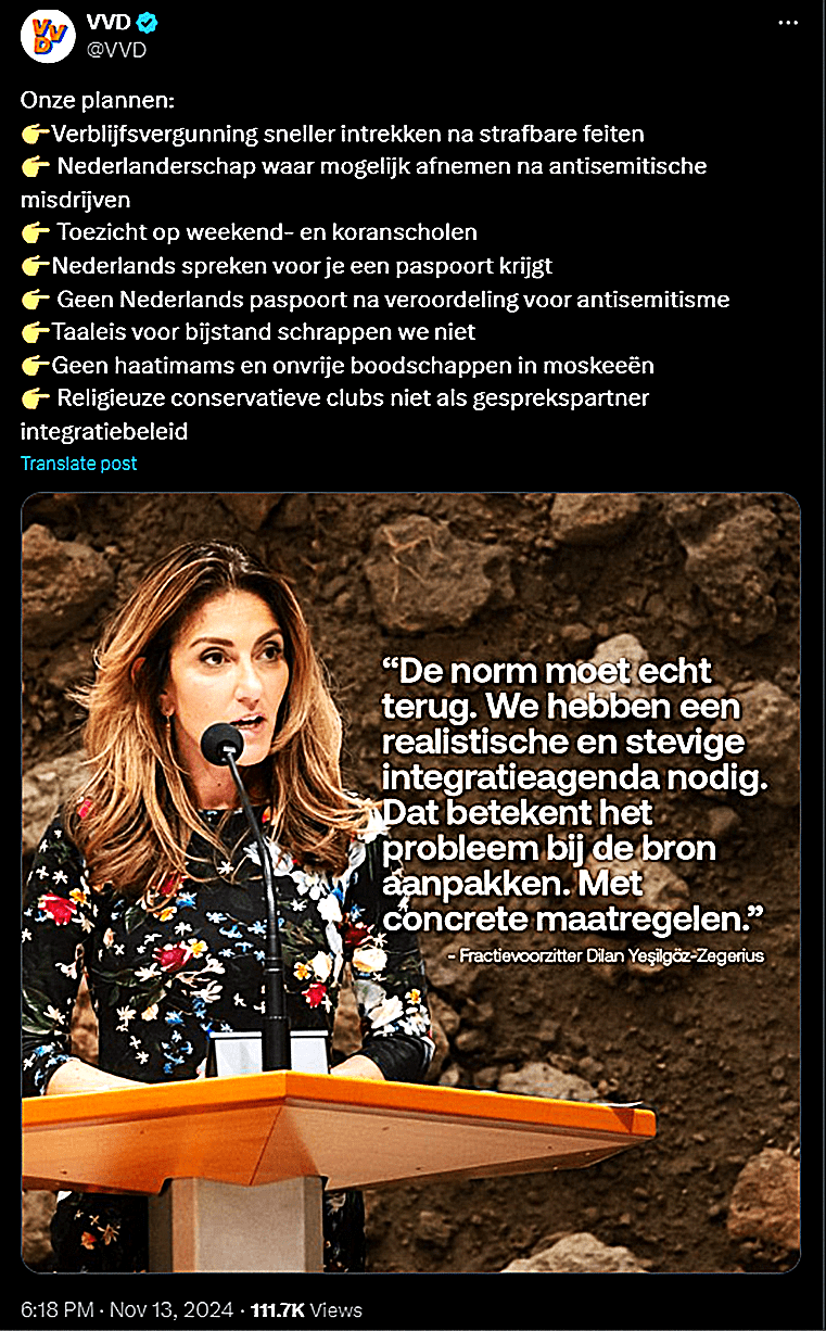 Woensdagavond maakte de VVD haar nieuwe plannen voor het integratiebeleid bekend. Het is ironisch dat de VVD zichzelf de Volkspartij voor Vrijheid en Democratie noemt, zeker als je bedenkt dat de partij zich sterk onderscheidt van haar verstoten, radicaal-rechtse broertje: de Partij voor de Vrijheid (PVV). In dit stuk bespreek ik de nieuwe voorstellen van de VVD en in hoeverre deze ingaan tegen de basisprincipes van de partij. Op X deelt het partijaccount @VVD de volgende plannen: